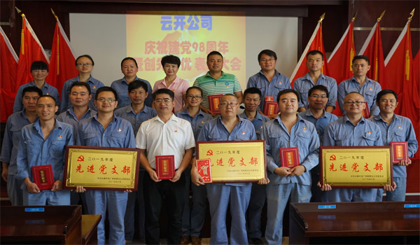 2019年6月28日,云开公司庆祝建党98周年暨创先争优表彰大会在公司多功能厅举行。在职党员和公司第一、第二党总支委员120余人参加会议,公司党委委员、副总经理龚绍成主持会议。